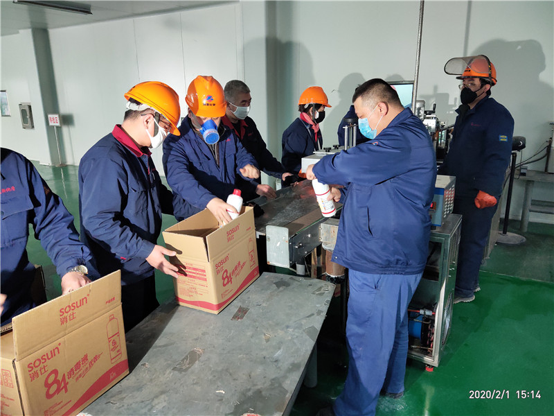 公司黨員突擊隊在84消毒液生產現場
