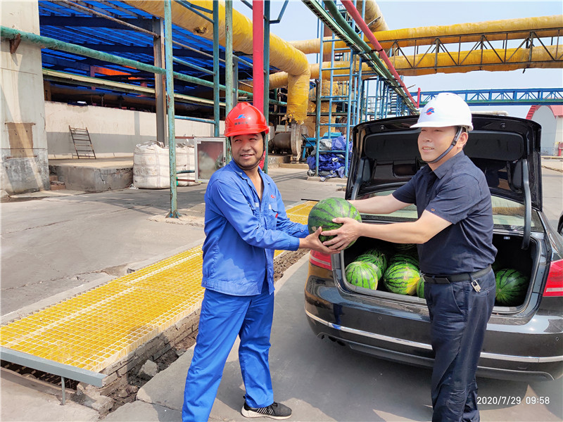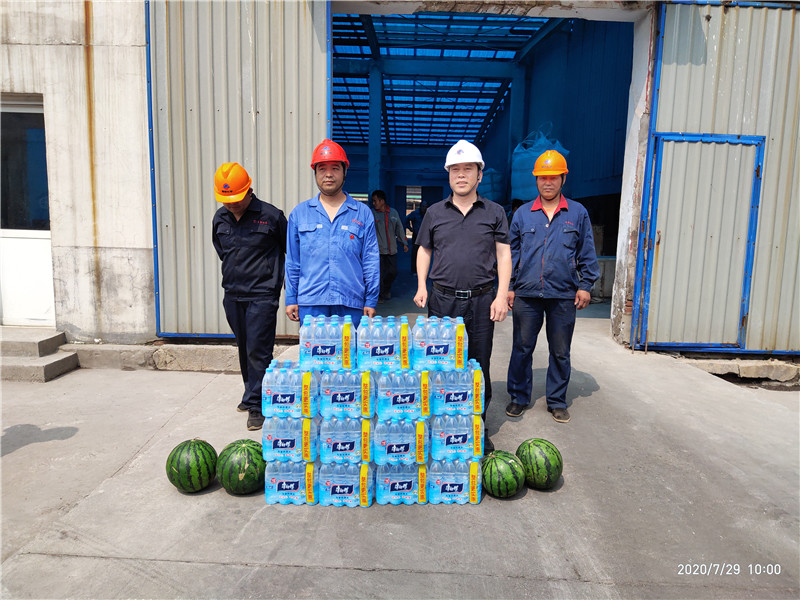 進入三伏天后,一線職工的工作和生活情況時刻牽動著集團領導的心,7月29日上午,集團工會主席韓紅喜一行來到我公司三車間熱解崗位,為工作在一線的職工送去礦泉水、西瓜等解暑物品,韓主席同時囑咐大家在保證做好安全生產工作的同時,一定要照顧好自己的身體,注意勞逸結合和做好防暑工作,同時囑咐現場的管理人員做好職工后勤保障工作,切實保護好高溫天氣下廣大職工的身體健康。